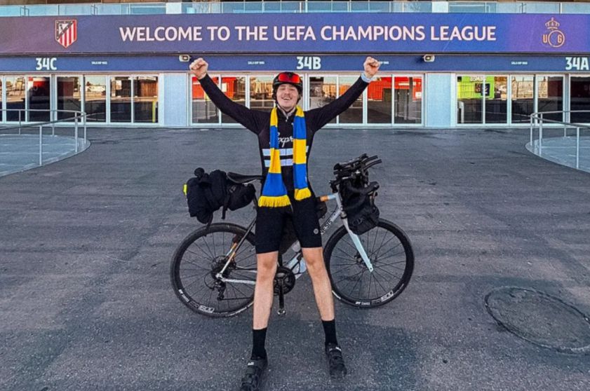 Một cổ động viên San Giros đã đạp xe 1.570 km trong 10 ngày để xem trận sân khách Champions League gặp Atletico Madrid