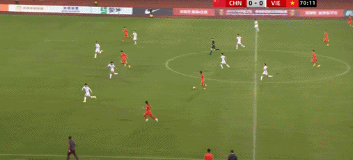 33' Đội tuyển Trung Quốc thực hiện đường chuyền uy hiếp từ cánh trái vào vòng cấm, cầu thủ chạy biên trước khung thành chậm hơn một bước