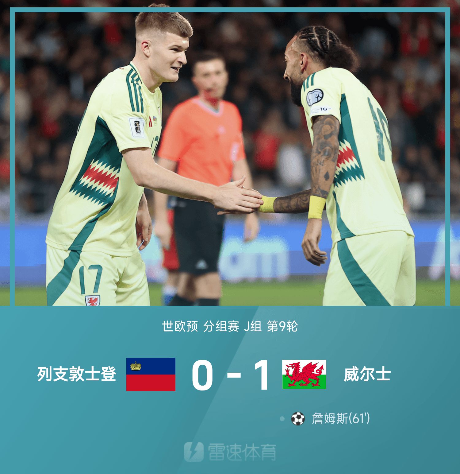 6686 Sports đưa tin ngày 16/11 rằng ở lượt 9 bảng J của Vòng loại khu vực châu Âu thế giới lần thứ 26, Liechtenstein đối đầu với Wales trên sân nhà. Trong hiệp một, Brodhead ghi bàn nhưng trọng tài đã can thiệp và trọng tài video cho rằng bàn thắng không hợp lệ. Phút 61 của hiệp hai, James ghi bàn thắng duy nhất của trận đấu để ấn định trận đấu. Chung cuộc, Xứ Wales suýt đánh bại Liechtenstein với tỷ số 1-0, và Xứ Wales được kỳ vọng sẽ giành quyền tham dự World Cup ở vòng bảng.