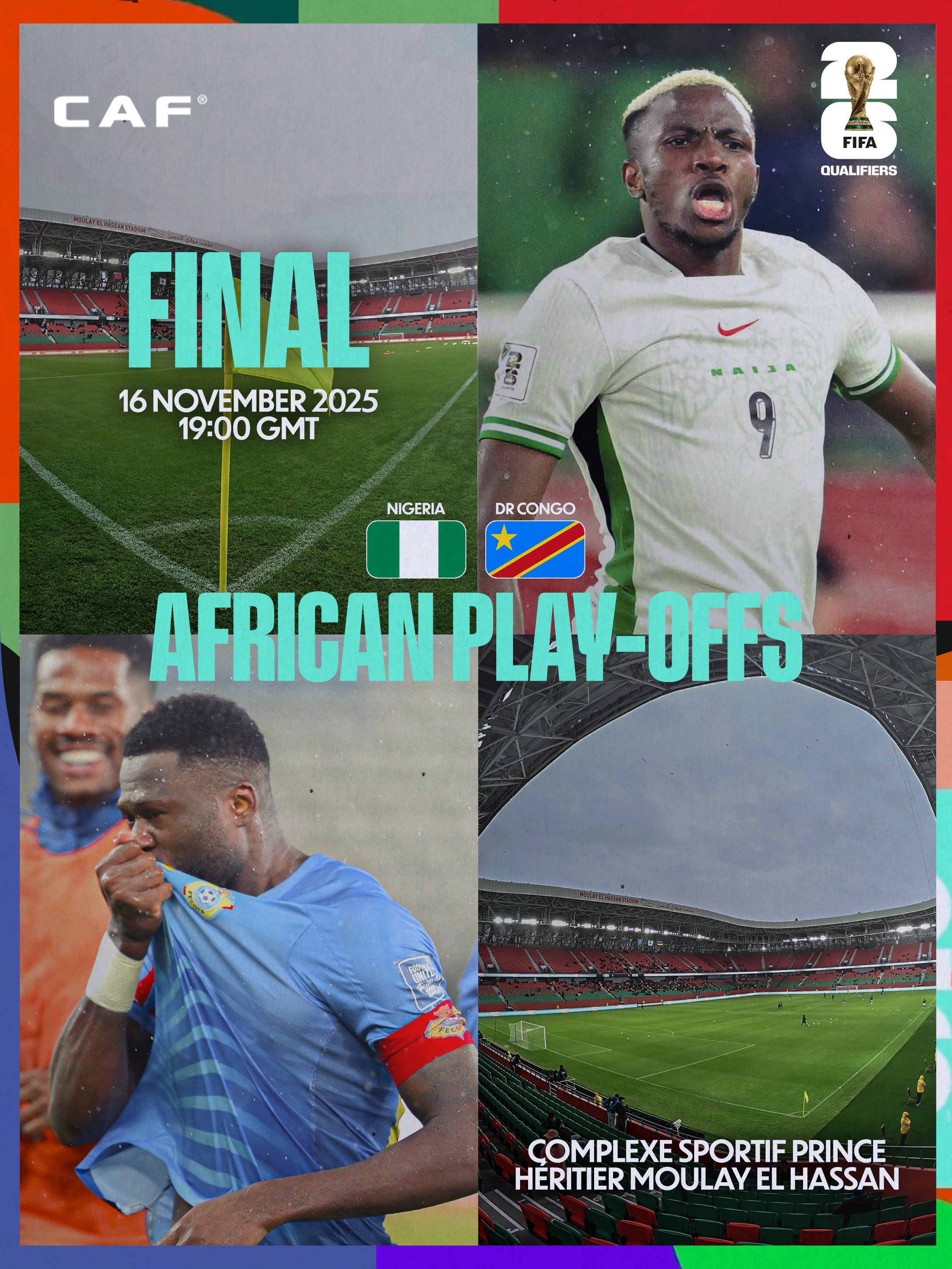 Ngoài sự tranh tài giữa các đội châu Âu, trận chung kết của Vòng play-off sơ bộ châu Phi thế giới cũng sẽ bắt đầu lúc 3 giờ sáng giờ Bắc Kinh vào sáng mai. Trận chung kết thi đấu theo thể thức vòng đơn và sẽ tiếp tục diễn ra trên sân trung lập ở Maroc. Đội thắng trong trận đấu giữa Nigeria và Cộng hòa Dân chủ Congo sẽ tiến tới vòng play-off liên lục địa và tiếp tục cạnh tranh suất tham dự World Cup với các đối thủ đến từ các châu lục khác.