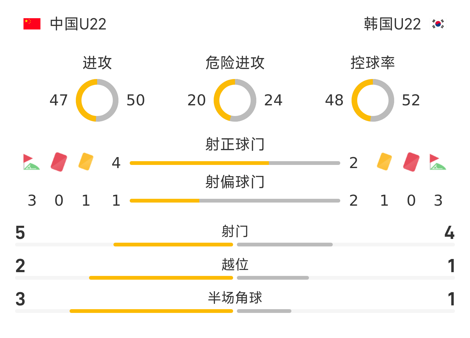 Đội tuyển Trung Quốc thực hiện một cú đá bên lề vào 35', rồi cú đánh đầu ở khu vực 3 giây bị thủ môn bắt giữ