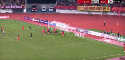 Đội tuyển Trung Quốc thực hiện quả đá biên ở phút 35, và sau đó thủ môn đánh đầu trong vòng 3 giây