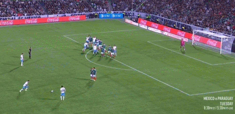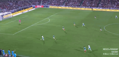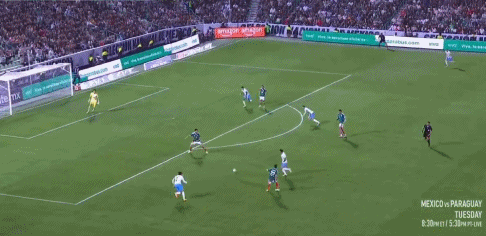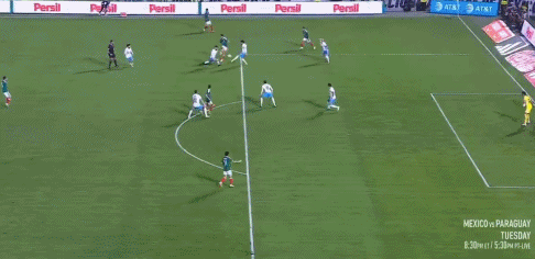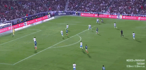 24’ Jimenez đánh đầu từ phía sau, Lozano bỏ lỡ cơ hội ghi bàn trống với cú sút nửa chừng chậm