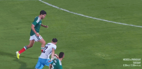 35' Alvarado chuyền bóng qua, Jimenez xoay người rê bóng không lực và không gây ra mối đe dọa nào