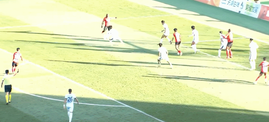 31' Zang Yifeng đột phá vào khu vực ba giây để nhận đường chuyền ngang của đồng đội và đẩy bóng đi cao hơn khung thành một chút. xà ngang