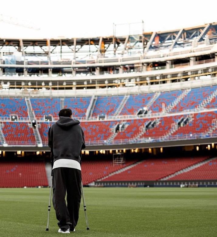 Sau đó, Garvey đã chia sẻ lên mạng xã hội một bức ảnh chụp anh bước vào Nou Camp bằng nạng.