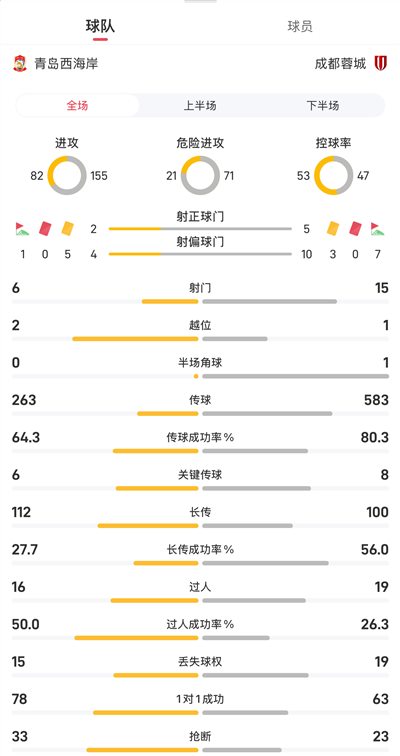 Thanh Đảo West Coast vs Thành Đô Thành Đô Thống kê cả trận: