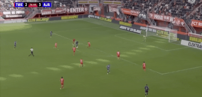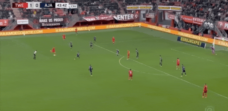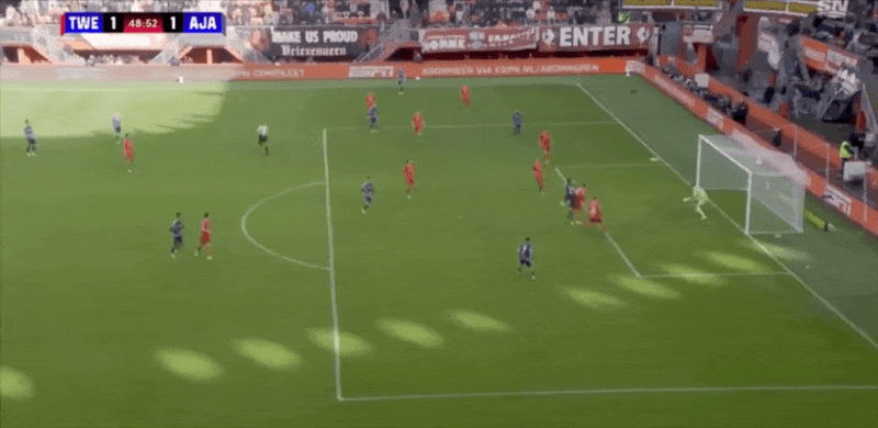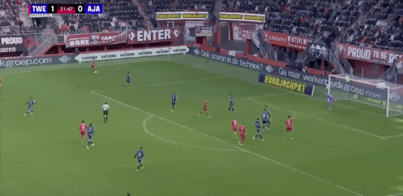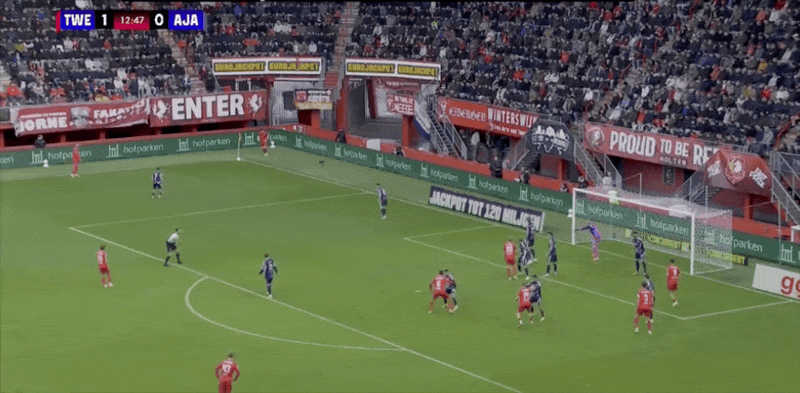 18' Verhorst quay người và rê bóng trong khu vực ba giây và ghi bàn thắng đầu tiên của trận đấu cho Ajax