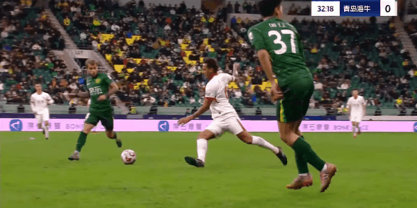 18' Manatee chuyền bóng từ cánh phải vào khung thành, He Yupeng đuổi theo và góp phần cản phá quan trọng