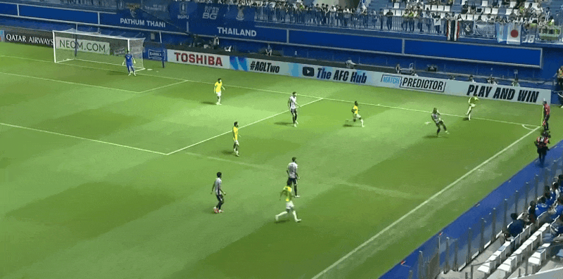 26' Somkrasin lốp bóng từ vạch trong khu vực ba giây, nhưng không kiểm tra được thủ môn đối phương