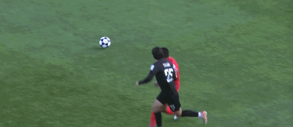 45' Hina chặn bóng ở phần sân phía trước để tạo thành một bàn thắng duy nhất, và thủ môn phải chật vật cứu bóng cứu đồng đội