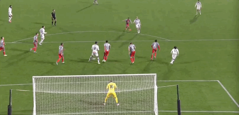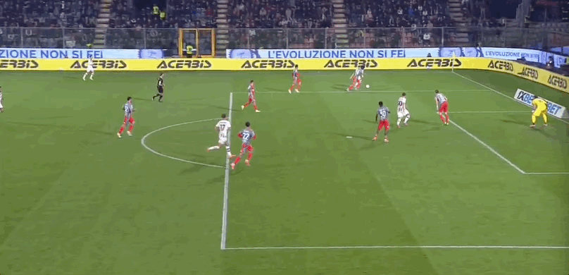 35’ Kostovich tung cú sút từ bên ngoài và thủ môn Cremona đã cứu được bóng