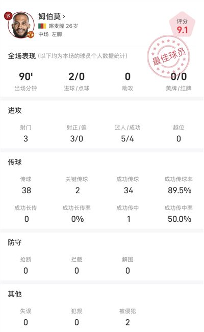 Thống kê toàn trận Mbemo gặp Brighton: lập cú đúp, tỷ lệ chuyền bóng thành công 89,5%