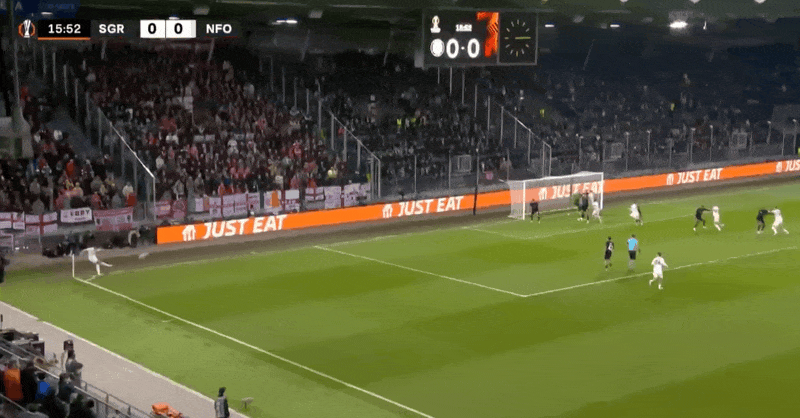 Đội Forest đe dọa thực hiện một cú đá cố định ở phần sân trước, còn McCarty đỡ bóng và đẩy góc xa ra ngoài khung thành một chút post