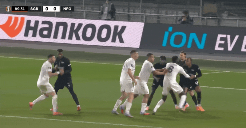 6' Kiteshvili ngã xuống đất sau khi bóng được chuyền qua. Trọng tài cho rằng không có hành vi vi phạm nào. Người trước thầm khen ngợi