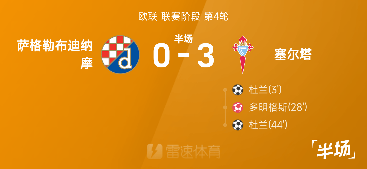 6686 Thể thao ngày 07 tháng 11 Ở vòng 4 Europa League 25/26, Dinamo Zagreb đối đầu Celta Vigo. Sau hiệp một, tỷ số giữa hai bên là Dinamo Zagreb 0-3 Celta. Duran ghi hai bàn và Dominguez đá phản lưới nhà.