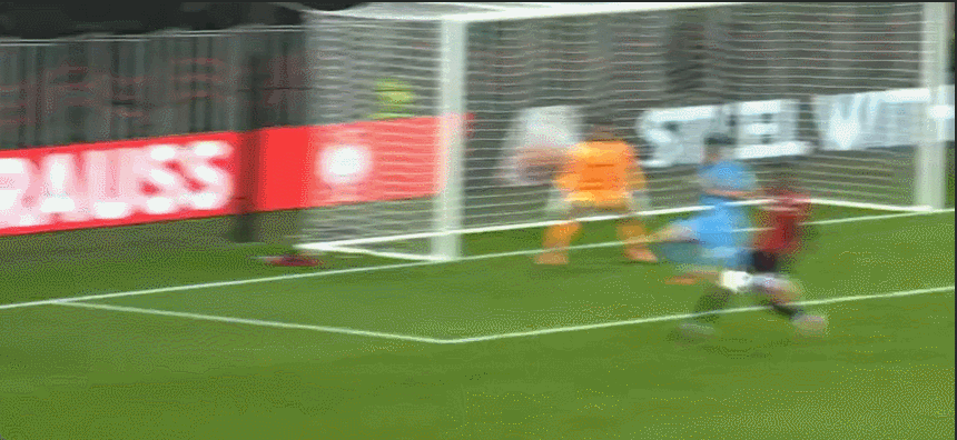 23’ Van Holt nhận đường chuyền ngang từ khu vực trên cùng của vòng cung và tung cú vô lê, Atubolu giữ bóng chắc chắn
