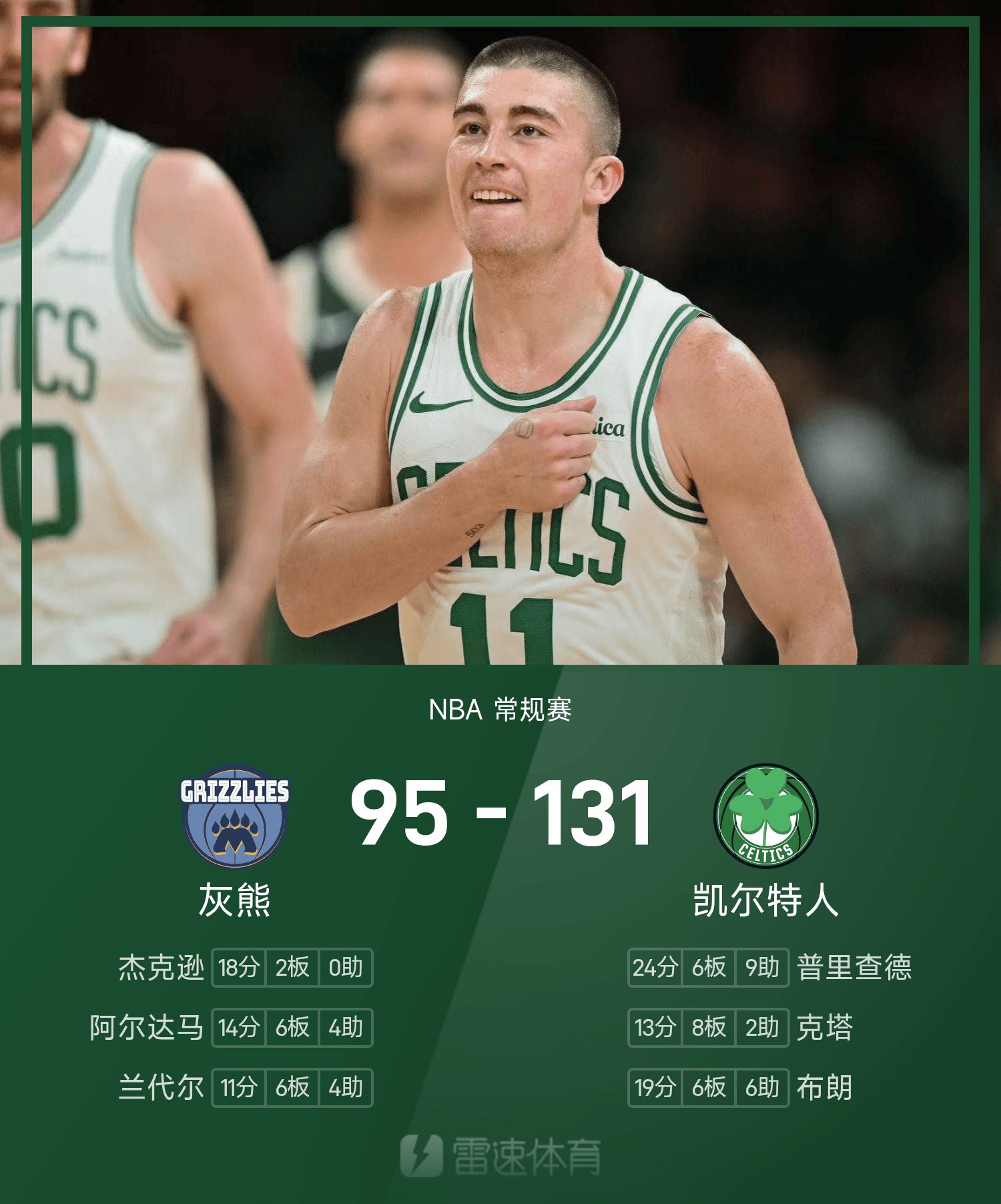 Cuối trận, Celtics đánh bại Grizzlies với tỷ số 131-95.