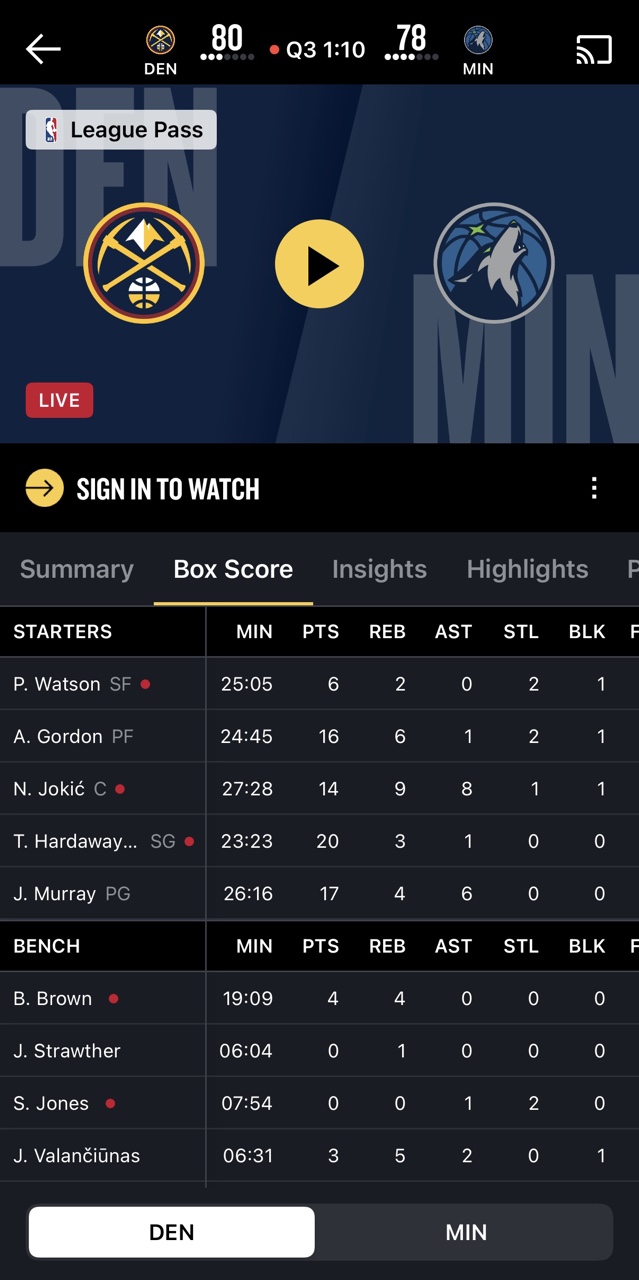 Nuggets đã đánh bại Timberwolves và thắng 7 trận liên tiếp. Dữ liệu trang web chính thức của NBA vẫn đang được sửa đổi.