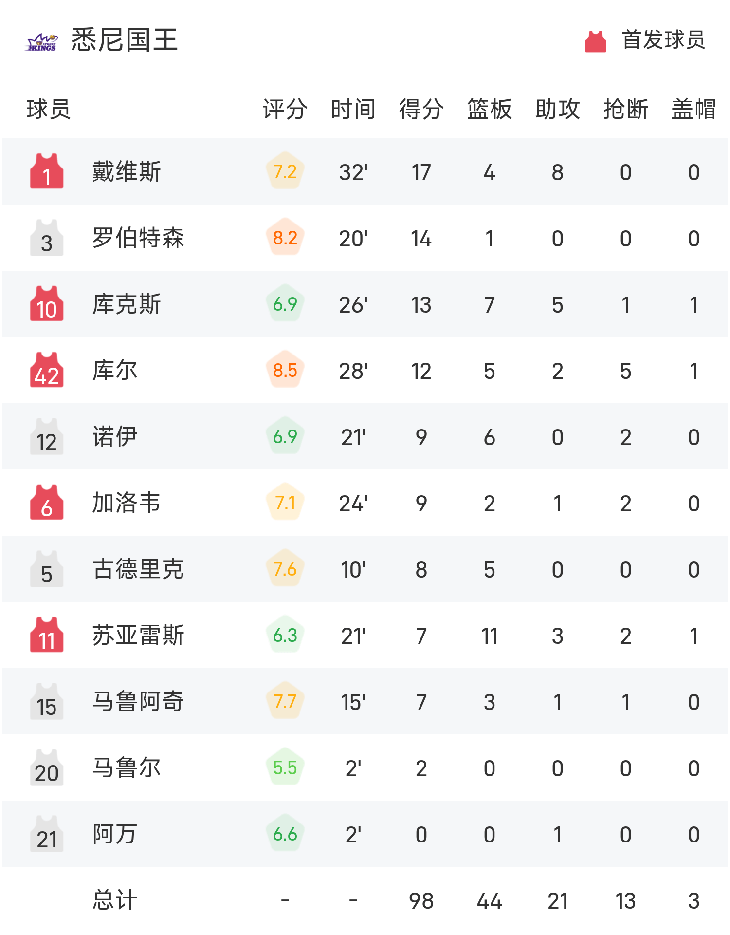 Báo cáo trận đấu NBL: Davis có 17 điểm và 8 kiến tạo, Sydney Kings đánh bại Illawarra Hawks 98-71