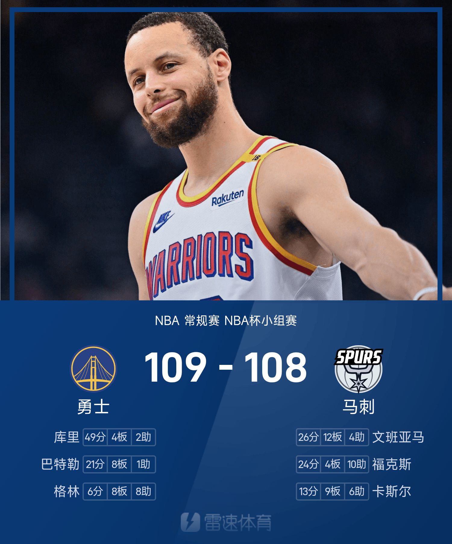 Warriors 109-108 Spurs