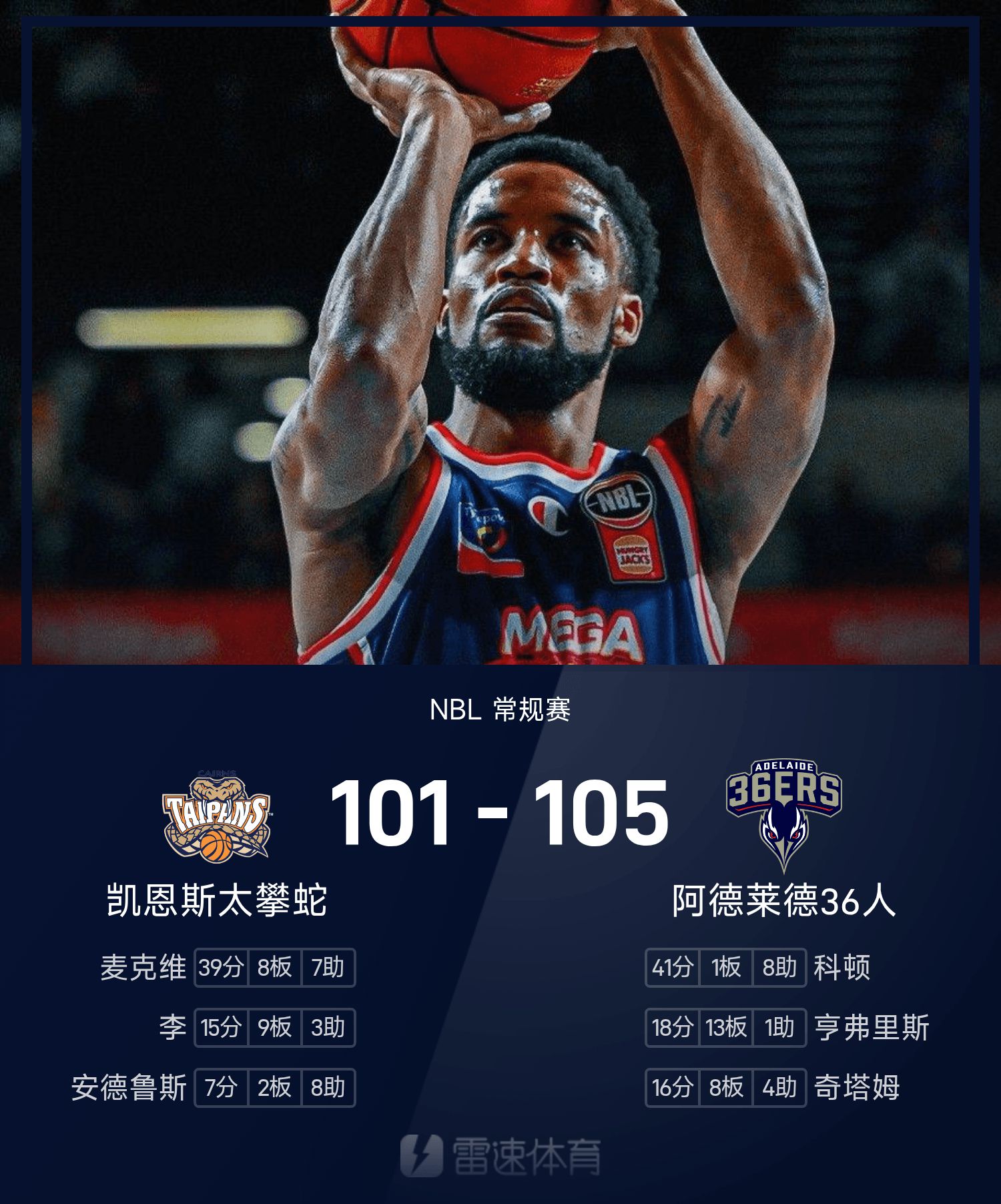 Báo cáo trận chiến NBL: Cotton có 41 điểm và 8 kiến tạo, 36 người suýt đánh bại Taipan Snake ở playoff 105-101