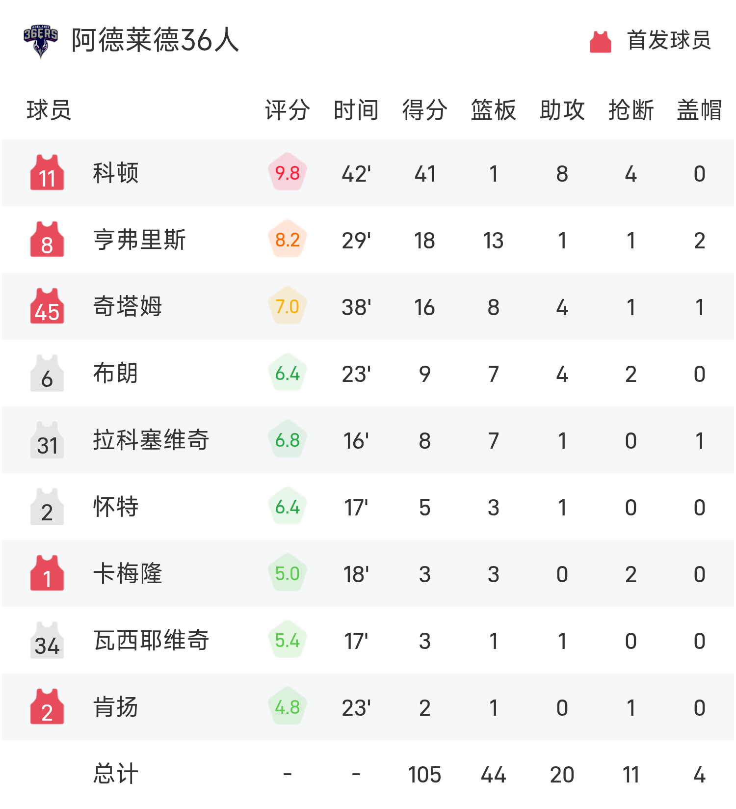 Cotten đã ghi được 41 điểm cao nhất trận, 1 rebound và 8 kiến tạo, giúp 36 Adelaide giành chiến thắng.