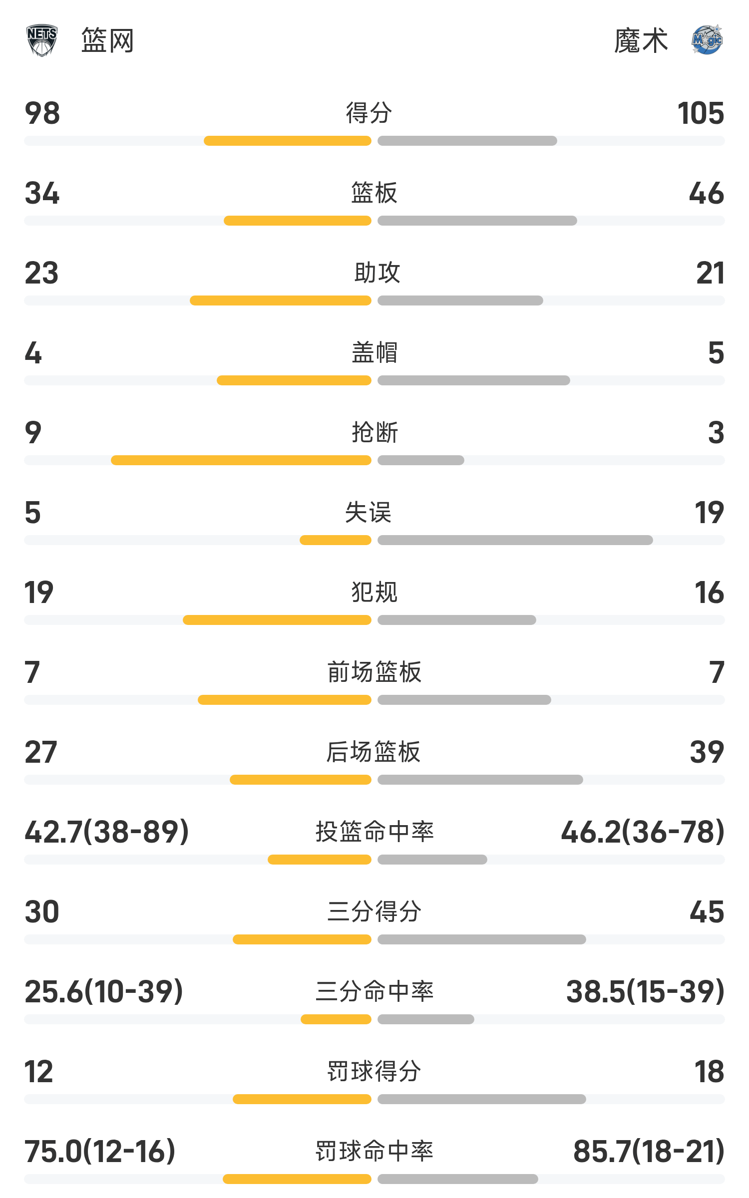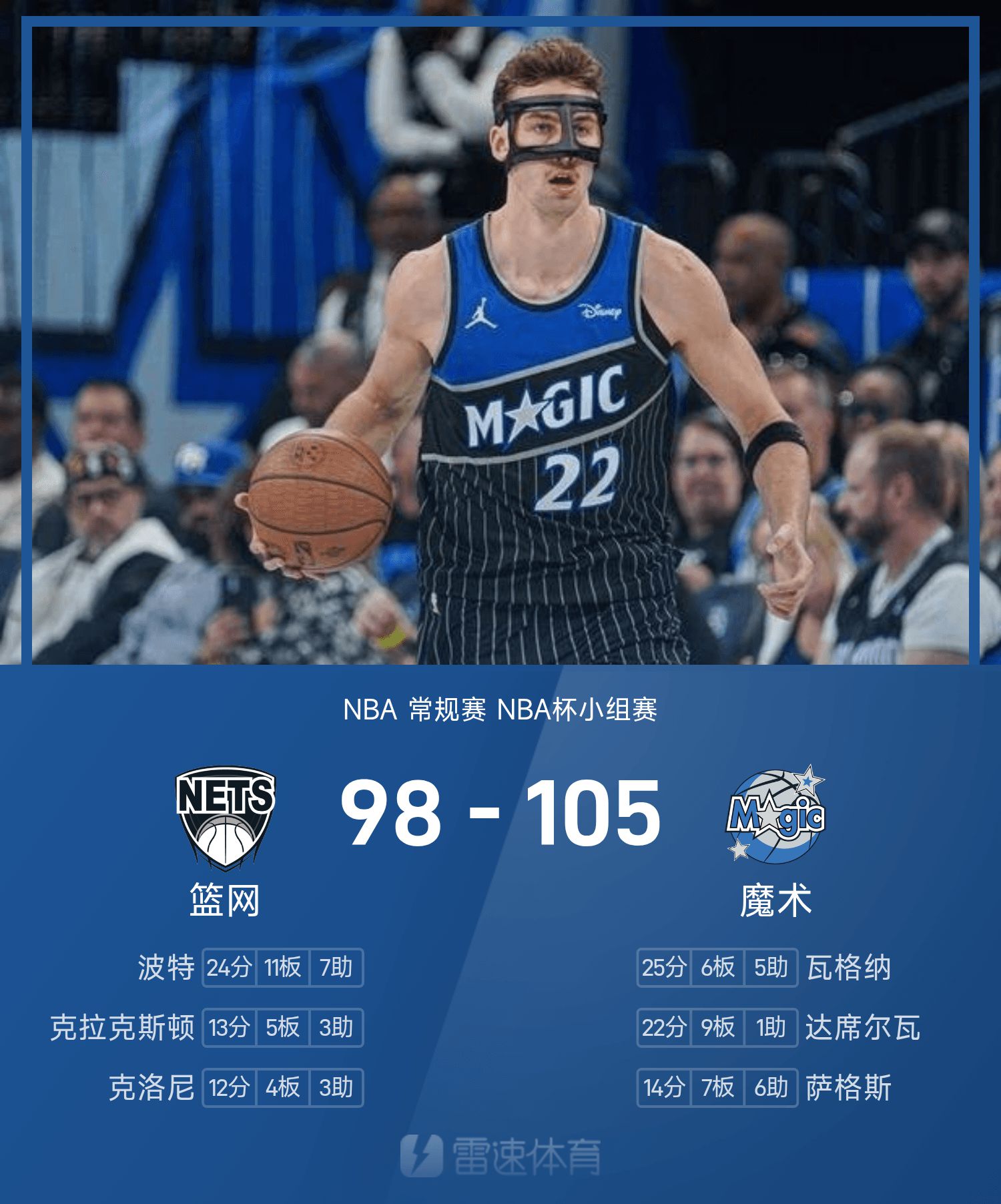 Cuối trận, Magic đã đánh bại Nets với tỷ số 105-98.