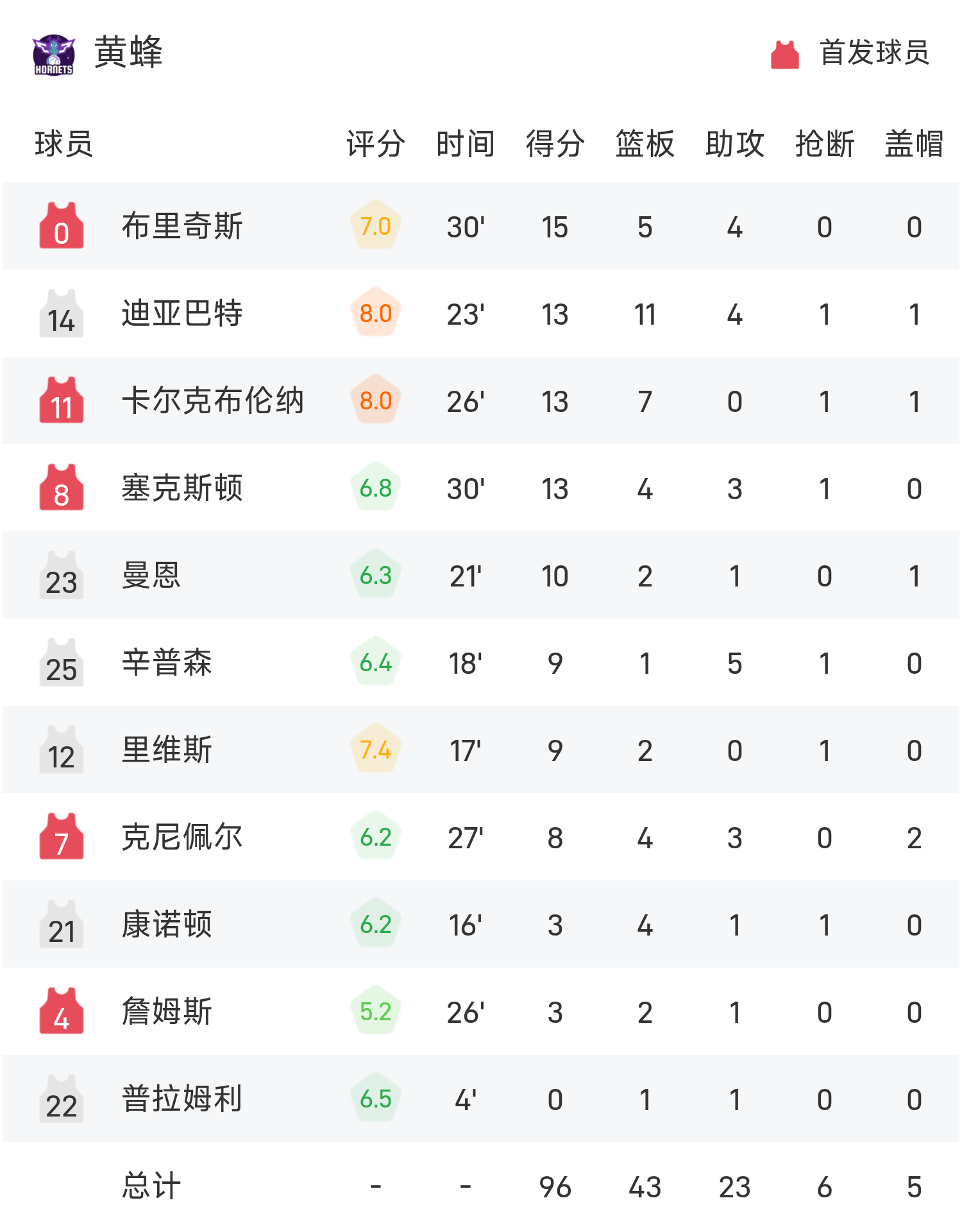 Cuối trận, Hornets thua Thunder với tỷ số 96-109.