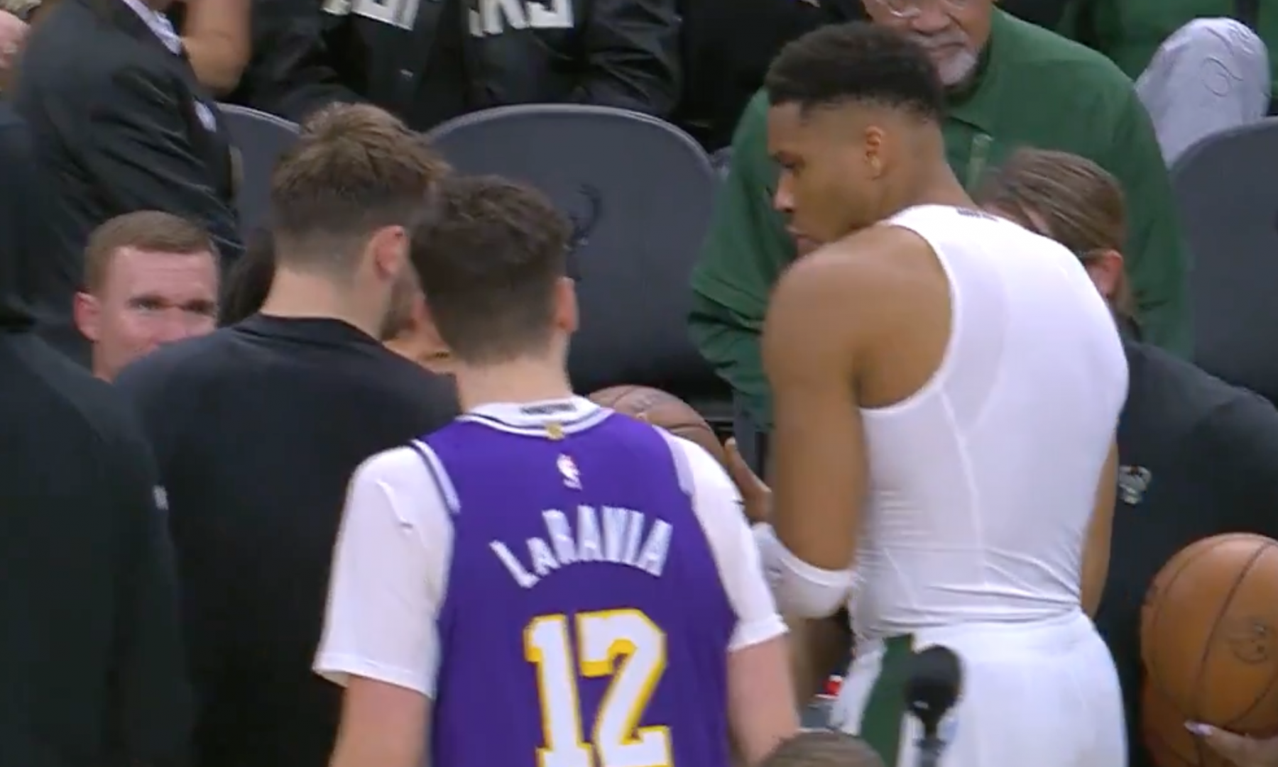 Sau đó, trọng tài đã trao bóng thi đấu cho nhân viên đội chủ nhà Bucks. Sau khi nhìn thấy, các cầu thủ Lakers bước tới và giải thích rằng họ muốn lấy quả bóng thi đấu đi, nhưng nhân viên Bucks vẫn không có ý định trao nó đi. Cuối cùng, Antetokounmpo đã nhìn thấy và trực tiếp tiến tới, chủ động đưa bóng cho Doncic. Hai bên vỗ nhẹ vào nhau để bày tỏ tình hữu nghị.