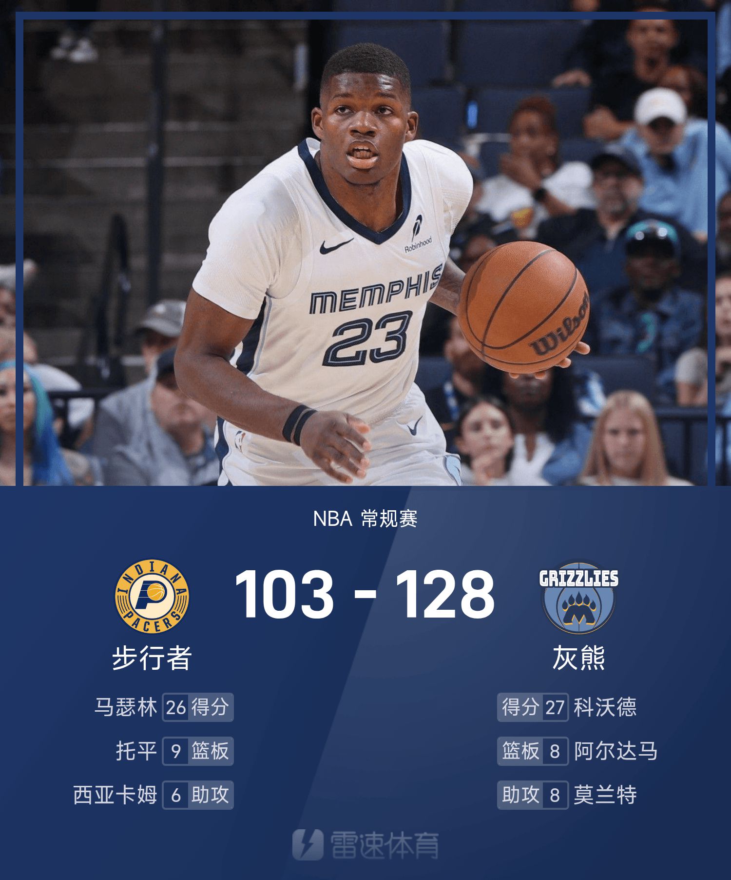 The Grizzlies đánh bại Pacers với tỷ số 128-103