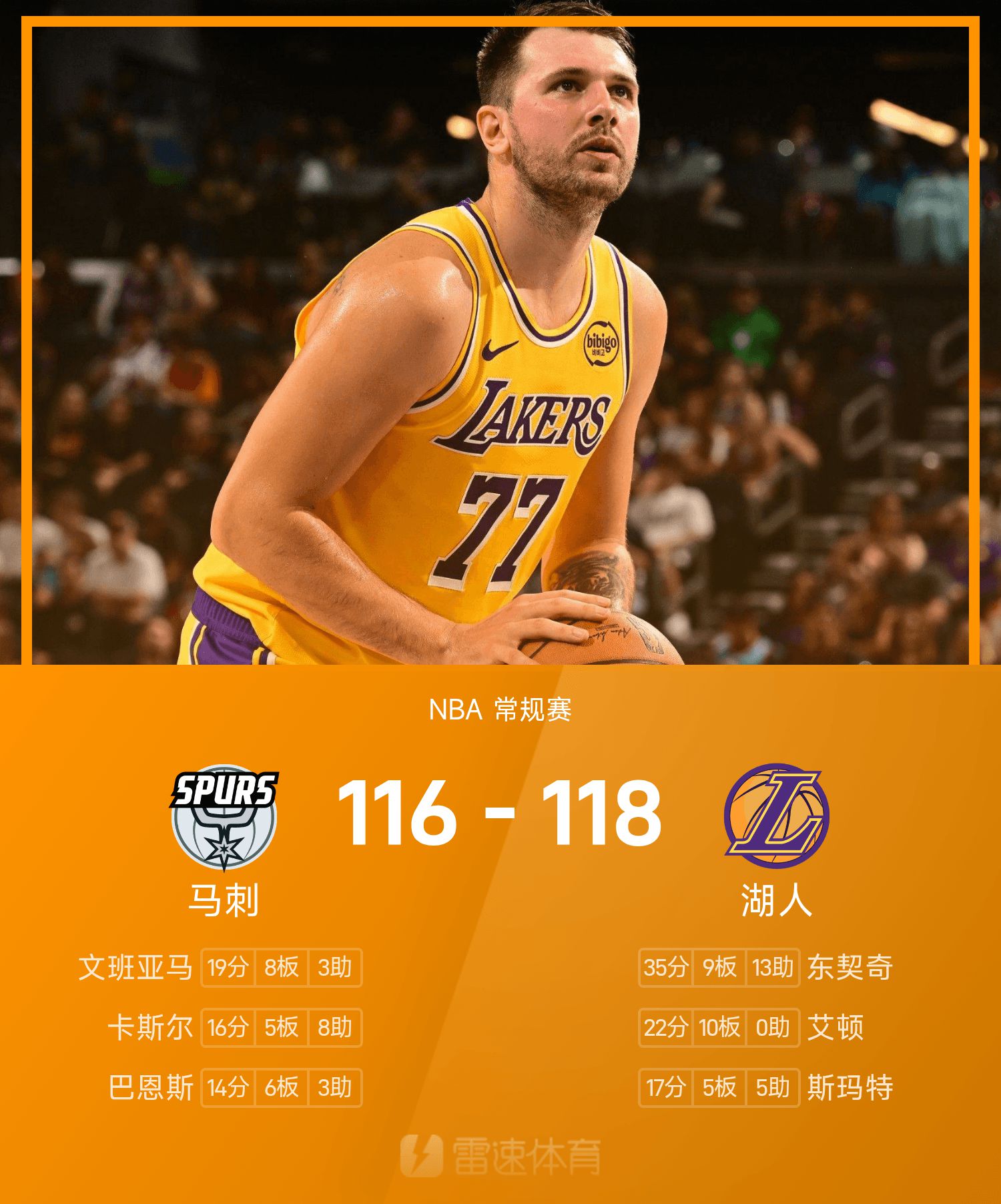 Báo cáo trận đấu NBA: Doncic có 35 điểm, 9 rebound và 13 kiến tạo, Lakers suýt đánh bại Spurs 118-116