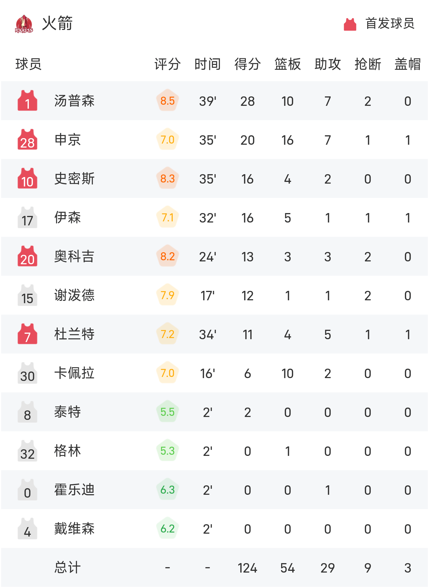Báo cáo trận đấu NBA: Amen có 28 điểm, 10 rebound và 7 kiến tạo, Rockets đánh bại Grizzlies với tỷ số 124-109
