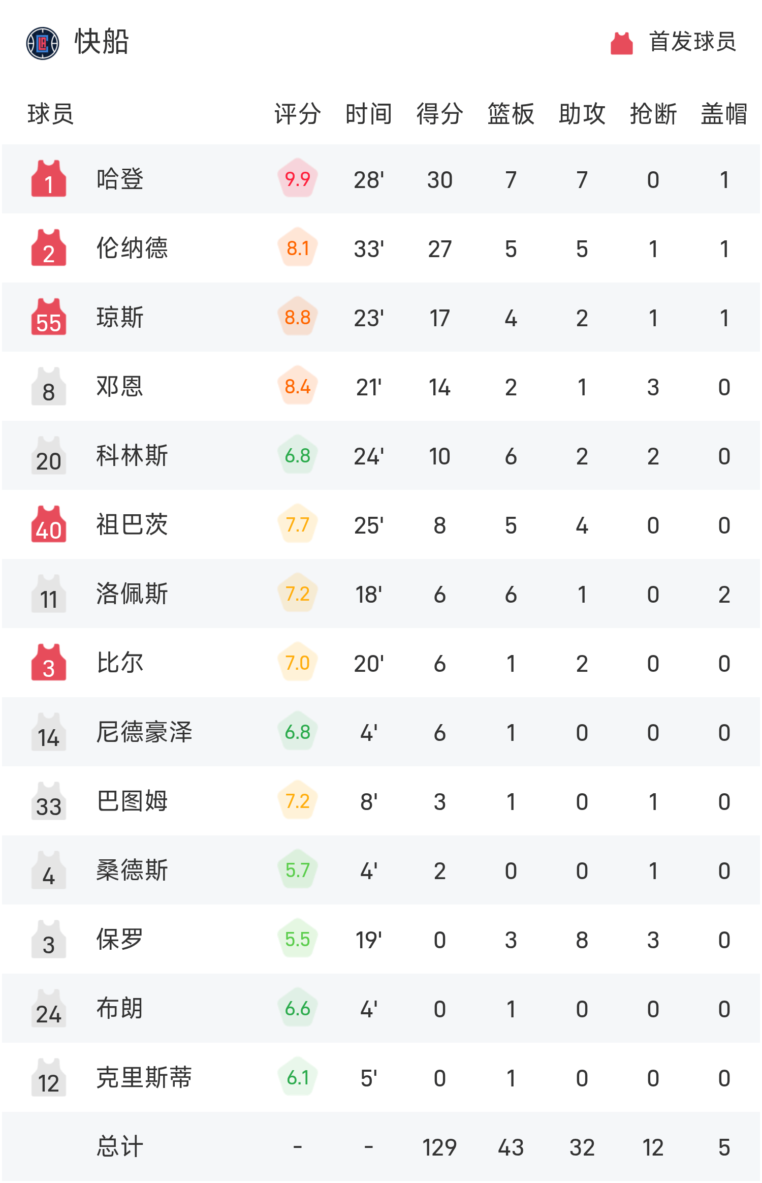 Báo cáo NBA: Harden có 30 điểm, 7 rebound và 7 kiến tạo, Clippers đánh bại Suns 129-102