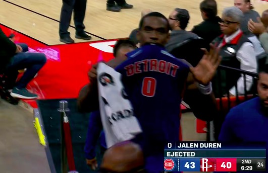 Duren dùng cùi chỏ đánh vào mặt Amen Thompson và bị huýt sáo vì vi phạm trắng trợn cấp độ hai và bị đuổi ra khỏi sân.